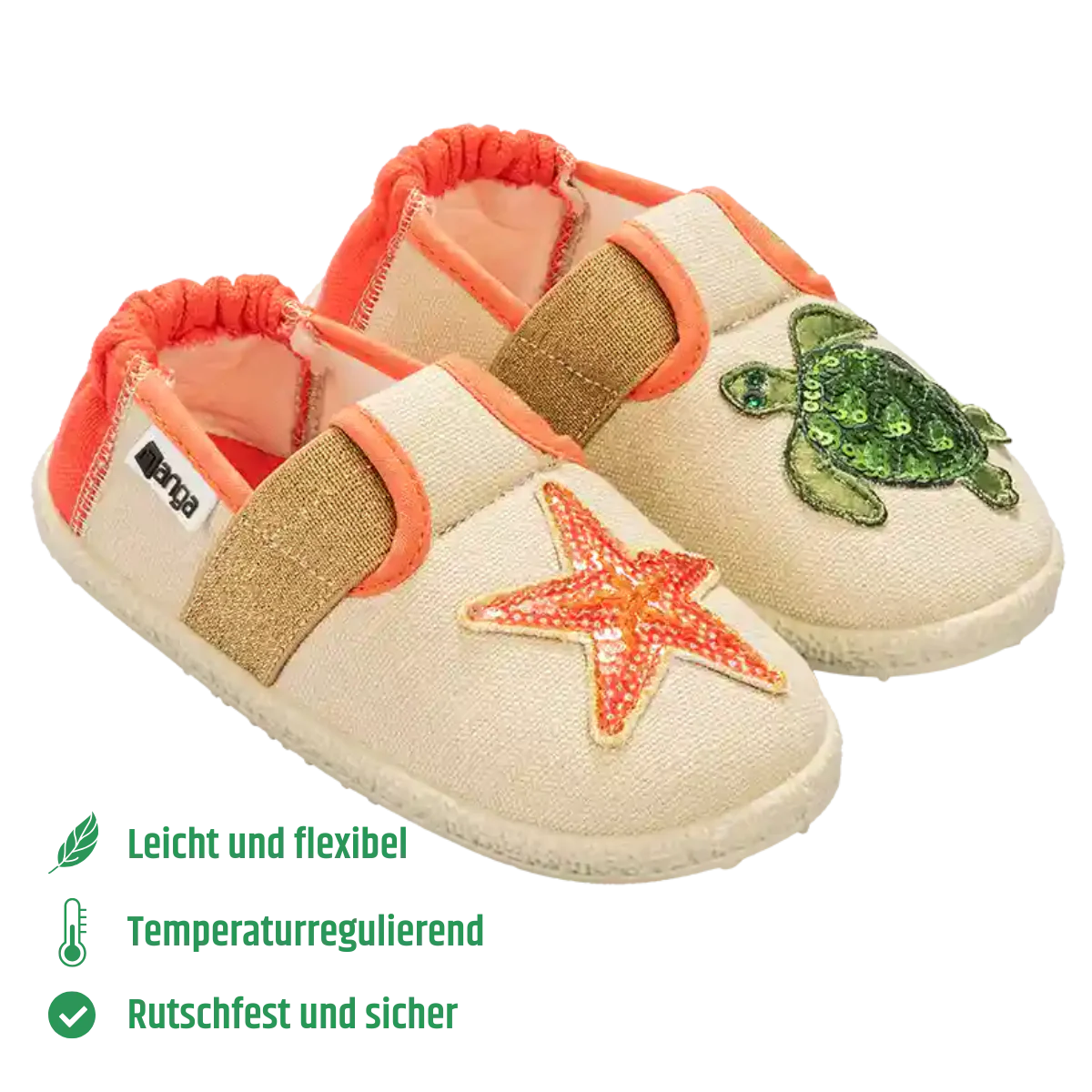 mit NANGA’s Schuh „Goldstrand“ bist du immer bereit für die nächste Welle! 🌊🐢✨